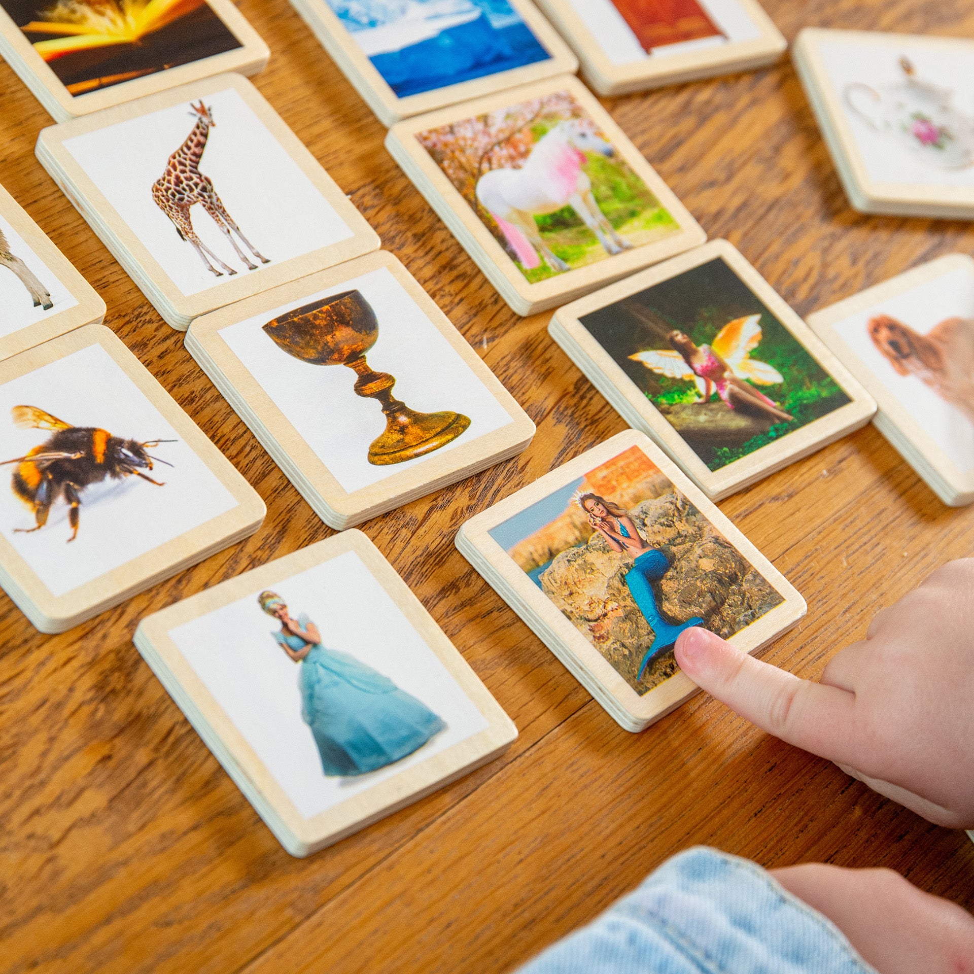 Crafted from lightweight FSC® basswood ply, these tiles are chunky enough to stand upright, making them ideal for tabletop activities. The clear photographic imagery offers a mix of imaginative and real-life scenarios, perfect for developing an understanding of different concepts—such as distinguishing between reality and fantasy.
