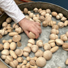Das Set beinhaltet: 120 natürliche Holzschätze, geliefert in einem Baumwollbeutel mit Kordelzug.