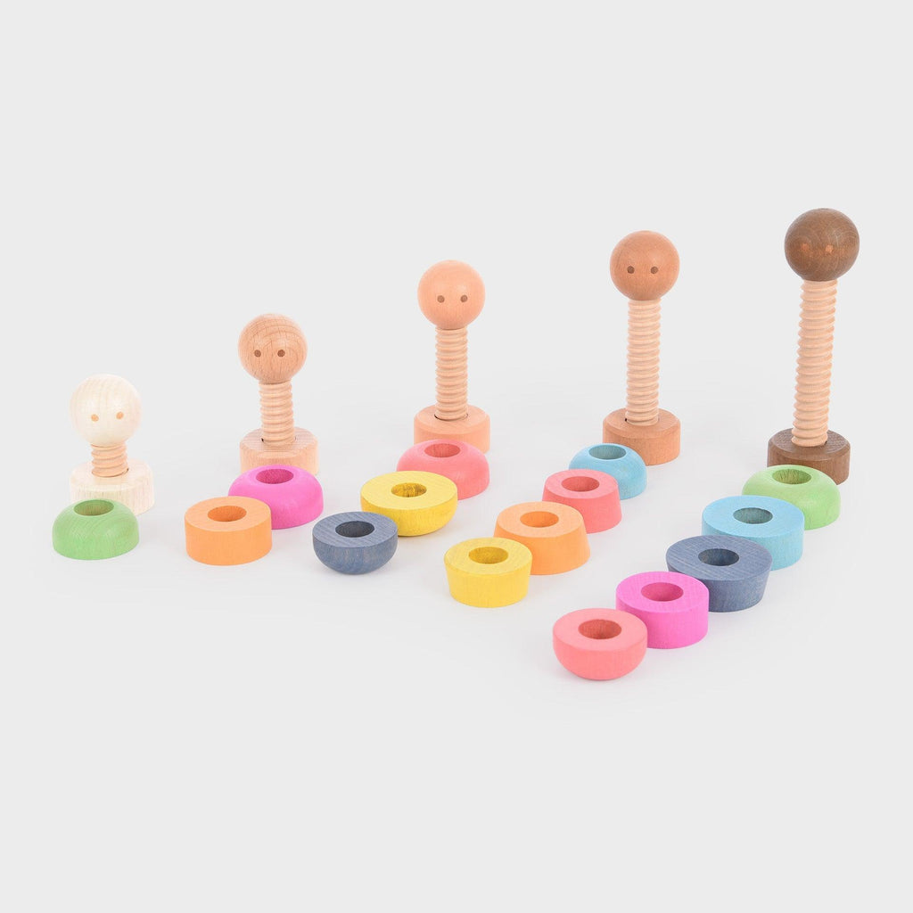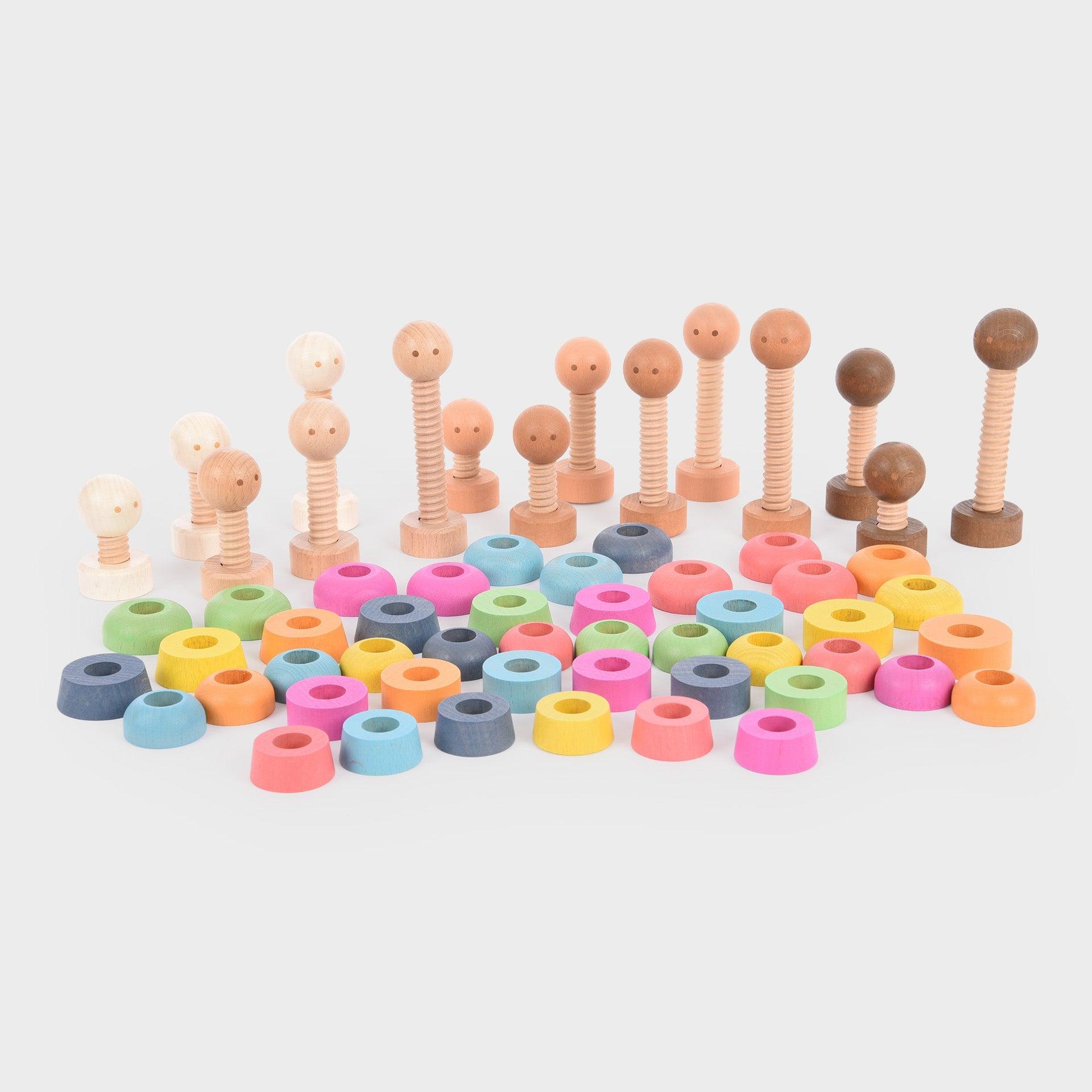 Der Tickit® Die Komponenten von Rainbow Wooden Community People sind mit unserem Tickit kompatibel® Regenbogen-Holzmuttern und -Schrauben (73999), ideale Begleiter für längeres Spielen!