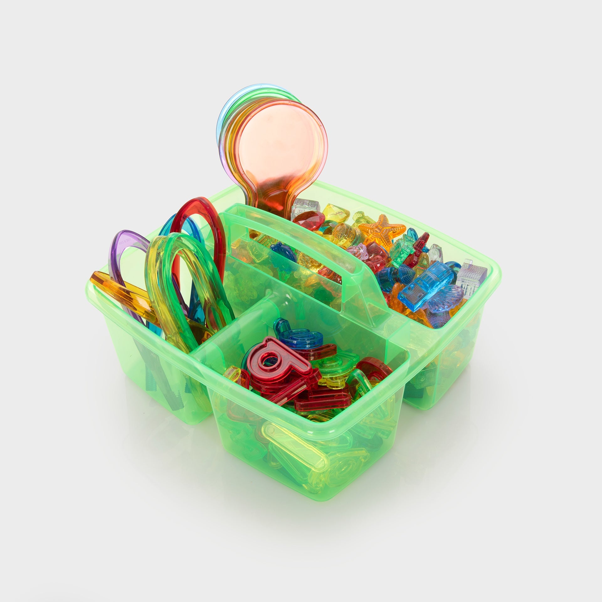 Set includes: Handy-sized 3-compartment caddy, making storage simple and accessible, and the following translucent colour resources: